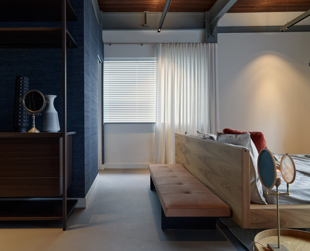 De inrichting is doordacht en functioneel, met maatwerkoplossingen die aansluiten bij de schaal van de loft. Hierdoor ontstaat een harmonieuze leefomgeving waarin openheid, rust en geborgenheid in balans zijn.